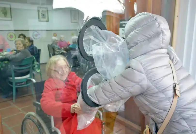 Se trató de una manga, colocada en la puerta de entrada, mediante la cual los familiares podían abrazar a los adultos mayores sin entrar en contacto directo con ellos y por lo tanto, sin ponerlos en riesgo.