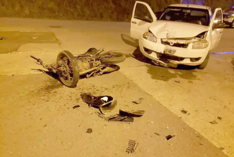 El accidente sucedió pocos minutos después de las 19 cuando un automóvil Fiat Siena, patente NDQ 768, perteneciente a la agencia de remis La Florida colisionó con una moto tipo motocross 125 cc, en la intersección de la avenida Trabajadores Municipales y Gorman.