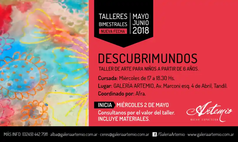 En esta línea, la Galería Artemio ofrece originales propuestas artísticas para este bimestre mayo-junio 2018. Cada una de ellas está pensada como espacios de encuentro, creación y debate para que todos se animen a participar.
