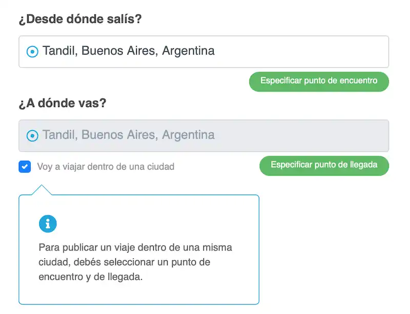 ViamoTutti.com ofrece la posibilidad de ingresar un punto de encuentro y uno de llegada para este tipo de viajes especiales, simplificando la acción.