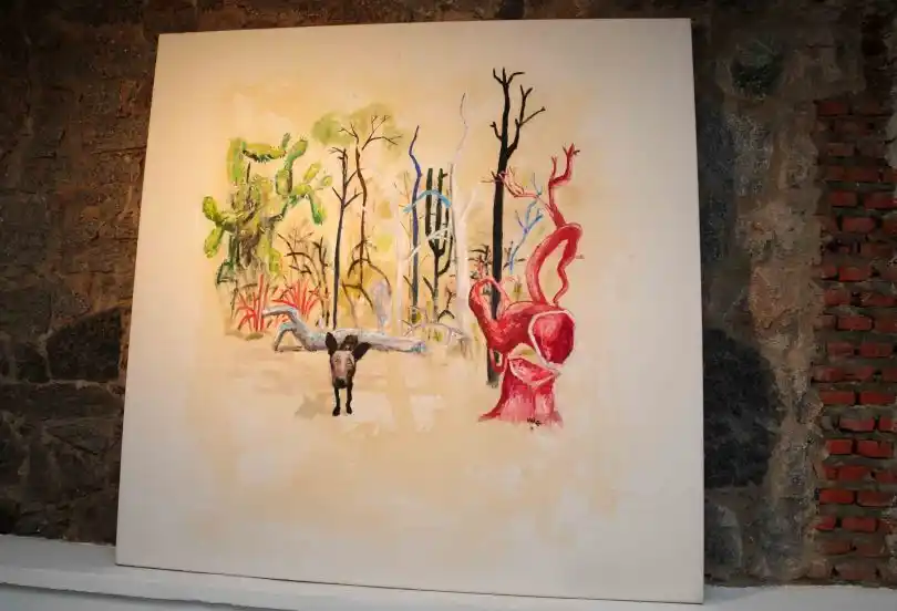 Diferentes cuadros trabajados con acrílico buscan dar cuenta de un mundo interior enorme, que se alimenta de otras manifestaciones artísticas y autores. Una de las obras, por ejemplo, alude a un cuadro de Antonio Berni donde denuncia la tala indiscriminada de quebracho colorado en el Chaco. Fierro, además, establece un diálogo constante con otros artistas y sus obras.