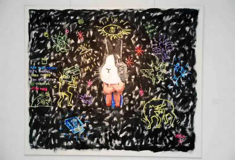 “Dialogo con lo residual de la historia del arte, entiendo lo residual como ese eco que persiste a través de los libros, de los cuadros. En algunas de las obras aquí exhibidas celebro y homenajeo a Picasso, Litchtenstein, Basquiat, Haring, Miró”, sostuvo. La sensibilidad habita cada fibra de su ser y sus obras pictóricas son el reflejo de aquel territorio fundante de la infancia enriquecido por una mirada original y propia.