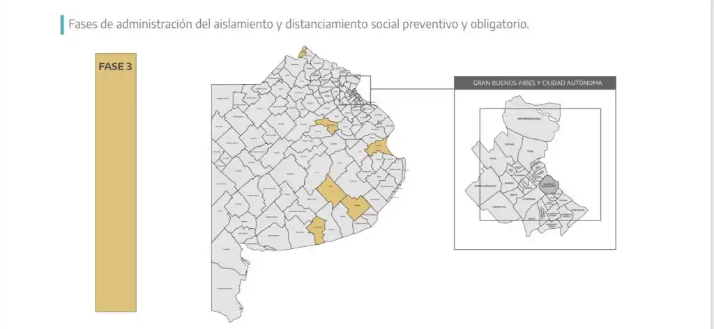 Accedé a las últimas noticias desde tu emailDe los 135 municipios que componen el territorio bonaerense, solo 16 se ubican en Fase 5, 113 en Fase 4 y los restantes seis en la Fase 3.