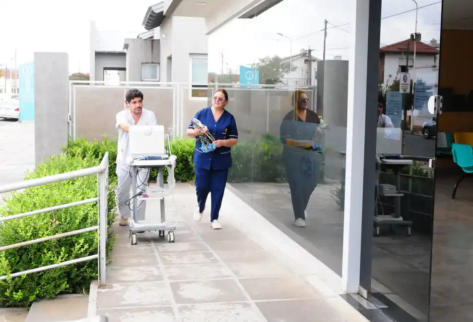 Si para muestra basta un botón, durante la recorrida este Diario se cruzó con dos trabajadores del área de cardiología que trasladaban un ecógrafo desde el Hospital Santamarina hacia los consultorios externos de Pellegrini y Paz, con el fin de descomprimir la afluencia de público en el nosocomio y asegurar las atenciones de urgencia en otro sector. Con una sonrisa, iban por la vía pública empujando el aparato, conscientes de cumplir con creces su trabajo.