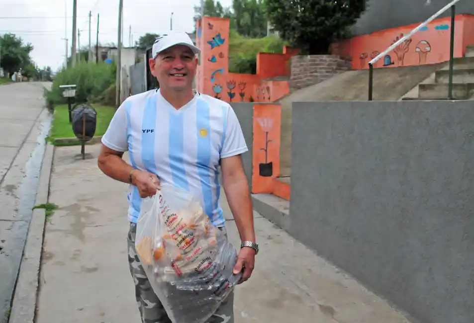 Héctor Almada es veterano de Malvinas y trabaja en la Escuela Secundaria 20 de Las Tunitas. Como muchos alumnos de ese establecimiento concurren al comedor de Cacha, decidió ayudar y les alcanza las facturas que una panadería dona para los chicos. Sucede lo mismo con el merendero Los Ángeles, a donde también va con su camioneta para que a nadie le falte un pedazo de pan.