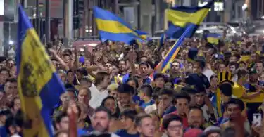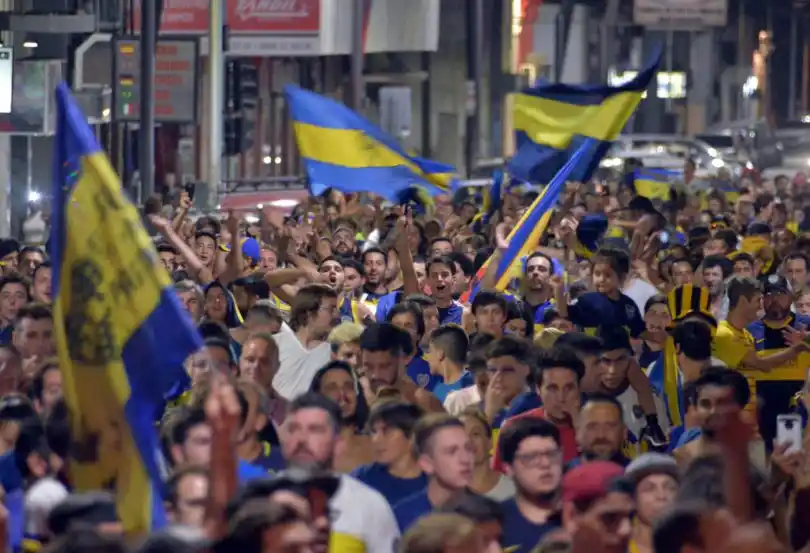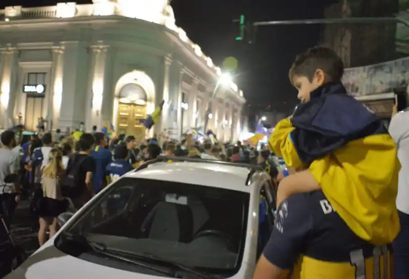 Los hinchas de Boca se volcaron a las calles tras la obtención del campeonato, formando una verdadera caravana que creció por la calle Rodríguez y desembocó en la plaza Independencia, clásico escenario de los festejos de cualquier logro deportivo.