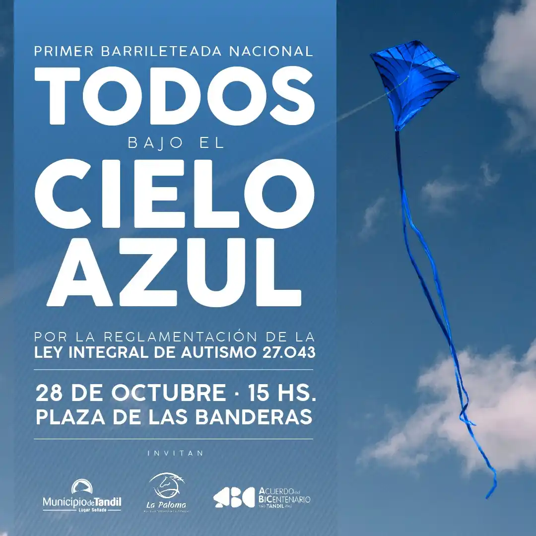 Este domingo desde las 15 en la Plaza de las Banderas, se llevará a cabo la primera barrileteada nacional denominada “Todos bajo el cielo azul”, por la reglamentación de la ley integral de autismo número 27.043. Por este medio se invita a la comunidad a participar de la propuesta.