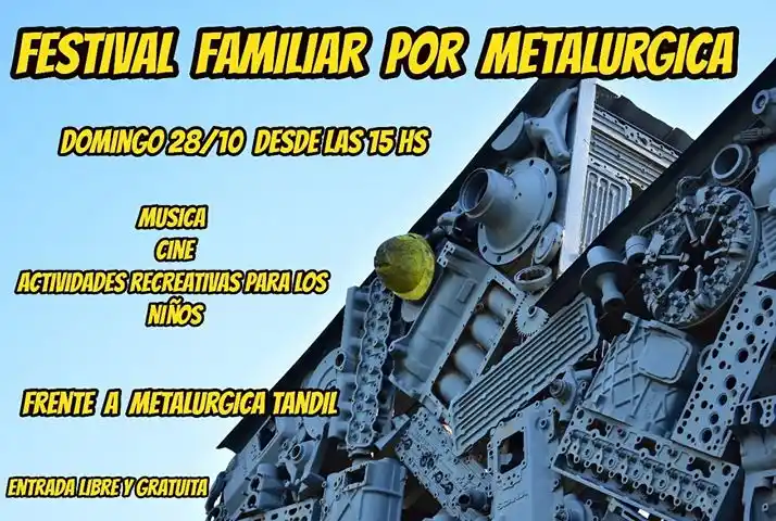 Se realizará este domingo desde las 15 un festival familiar por Metalúrgica Tandil, será frente a la tradicional empresa y habrá actividades recreativas para los niños, música y cine. La entrada es libre y gratuita.