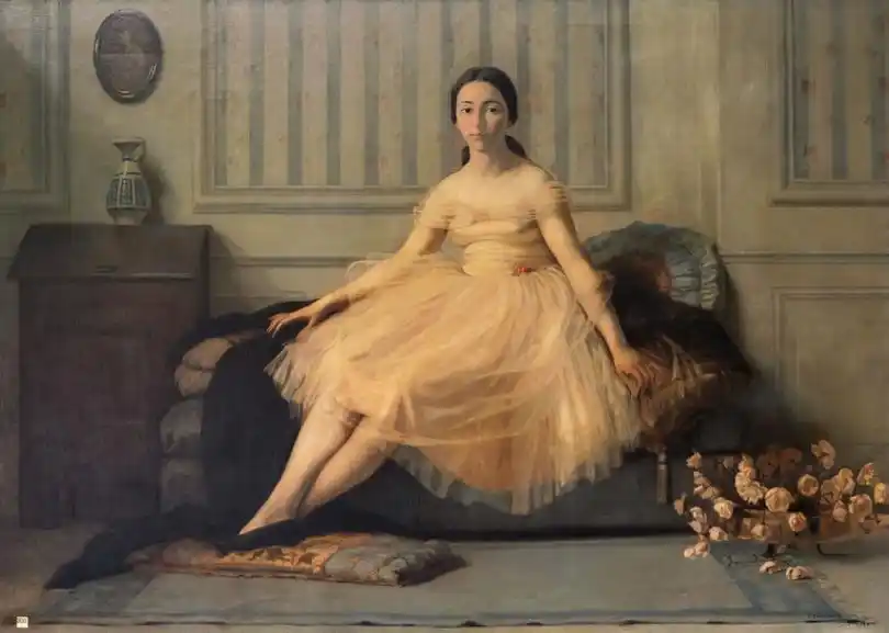 Otra de las obras que comprende el conjunto en exhibición es La dama de gris de Lía Correa Morales, un óleo sobre tela de 190 cm. x 115 cm. La historia del arte argentino contiene escasas referencias a mujeres artistas y una de las tantas excluidas de las visiones canónicas del arte argentino es la pintora, grabadora y dibujante Lía Correa Morales, frecuentemente relacionada a su ilustre esposo, el escultor argentino Rogelio Yrurtia.