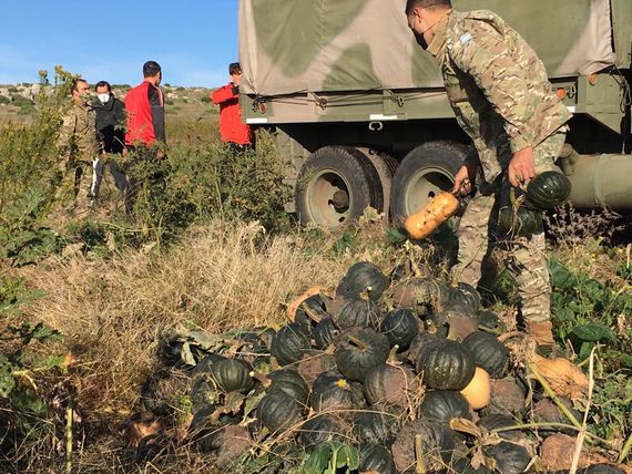 Voluntarios llevaron adelante la cosecha y personal del Ejército trasladó los zapallos a la sede de Desarrollo Social. El Arraigo, una chacra de 21 hectáreas donada al Municipio, funciona como un centro agroecológico experimental y educativo.