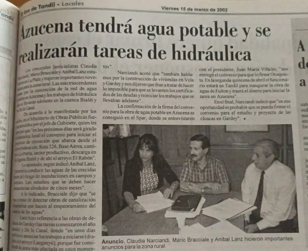 Lo más trascendente es la concreción de la red de agua potable en Azucena y trabajos de hidráulica que se llevarán adelante en la Cuenca Bialet y en De la Canal.