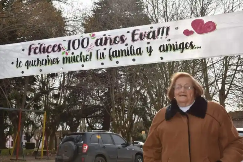 Eva, con sus flamantes 100 años, ya no camina por el pueblo (y menos con este frío) pero es habitual verla salir a la vereda y conversar con aquellos que atinan a pasar por su domicilio, a la mayoría de los cuales vio nacer y crecer. Y lo bueno es que lo hace con total lucidez.