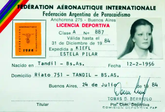 Estela Pilar Kiefl, es la única mujer tandilense con licencia deportiva otorgada por la Federación Argentina de Paracaidismo. Si bien pasaron muchos años desde aquel día en que dio su primer salto “que fue como ser pájaro por unos momentos”, recordó la dorada juventud donde pudo dar rienda suelta a su vocación y sentirse feliz flotando entre las nubes.