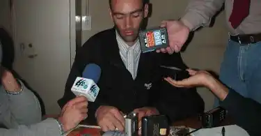 Esa mañana, el joven de 26 años había convocado a las 9.50 a los medios locales a la Sala de Prensa sin demasiadas especificaciones acerca de su anuncio. Aunque nunca sospecharon que él mismo sería noticia. En principio pareció una denuncia y luego devino en pedido solidario, en el que hizo comentarios acerca de la difícil situación económica que se atravesaba en esa época. “La historia que les voy a contar es relativamente normal. Después si quieren, pueden ser testigos de cómo termina”. Fue así como comenzó a relatar las justificaciones que sustentarían su decisión posterior. Luego de veinte minutos de un relato pausado acerca de las penurias de un hombre, dijo: “Hasta acá lo grabado. Lo siguiente, si quieren, en vivo…”