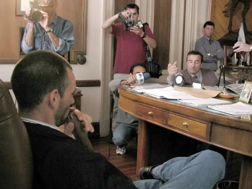 A pesar del recorrido inusual desde la sala de prensa hasta el despacho, LV afirma que era “todo normal, todo tranquilo. Era rara la forma” solamente. Cuando mencionó las palabras “esto no da para más y se abre la campera”, momento en el que toma la escopeta recortada que se encontraba dentro de su abrigo cambió todo el panorama. Sin importar la situación de tensión, no dejó de responder a su profesión como reportero: “Me dediqué a sacar fotos de todos los ángulos posibles”. Cuando Cabrera le dio un cigarrillo, porque los suyos habían sido olvidados sobre la mesa de la sala de prensa, pensó: “Se prende el cigarrilló, aflojó” y que todo terminaría allí.