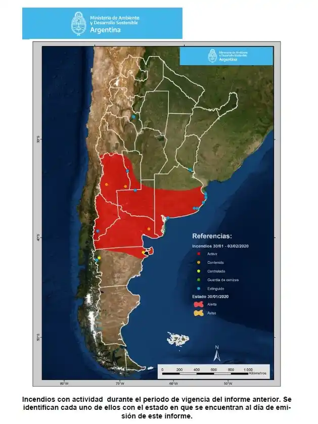 Accedé a las últimas noticias desde tu emailEl comunicado detalla que sobre el área bajo alerta las condiciones de peligro serán críticas en el comienzo del período. “Los indicadores de peligro de incendios se mantendrán en valores elevados; se prevé bajos valores de humedad relativa y temperaturas elevadas sobre el sur de la Pampa, este de Río Negro y extremo sudoeste de Buenos Aires, que ya se desarrollan tormentas con actividad eléctrica, fenómenos que se intensificarán por el ingreso de un importante frente frío en el comienzo del período”, explica el informe técnico.