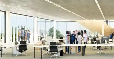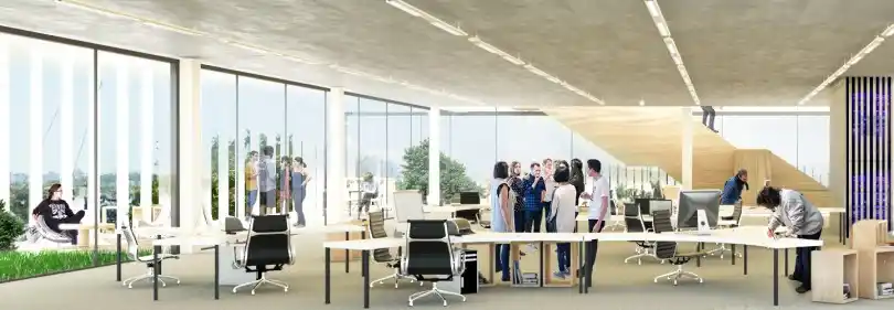 Los espacios flexibles de trabajo cuentan con 500m2 netos para organizar según tipo de usos. El piso técnico facilita la instalación o modificación de un nuevo puesto de trabajo. Cuenta con el programa de apoyo en su perímetro y visuales 360 grados a toda la ciudad de Tandil.