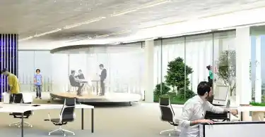 Todos los espacios de trabajo cuentan con ventilación de alto confort y baja energía. El calor del ambiente es recuperado para mayor ahorro energético. La utilización de un sistema de Captación Geotérmica de extracción y reinyección abierta es esencial para disminuir los esfuerzos de acondicionamiento.