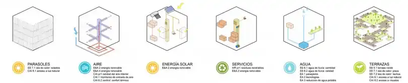 La técnología que utilizará el edificio para generación y ahorro energético contrasta con la elección de materiales simples de bajo mantenimiento, generando un equilibrio justo entre las decisiones proyectuales y la incorporación “High Tech”.