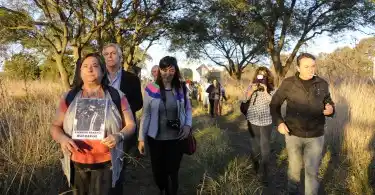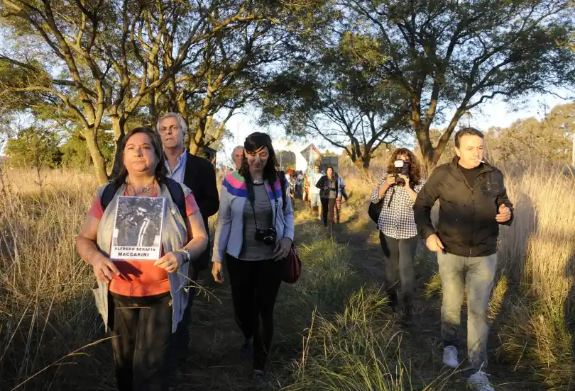 Finalmente, familiares de desaparecidos y sobrevivientes abrieron la tranquera de La Huerta y se dirigieron, por un extenso camino, hacia las casas donde estaban secuestradas las víctimas y donde se realizaban las torturas.