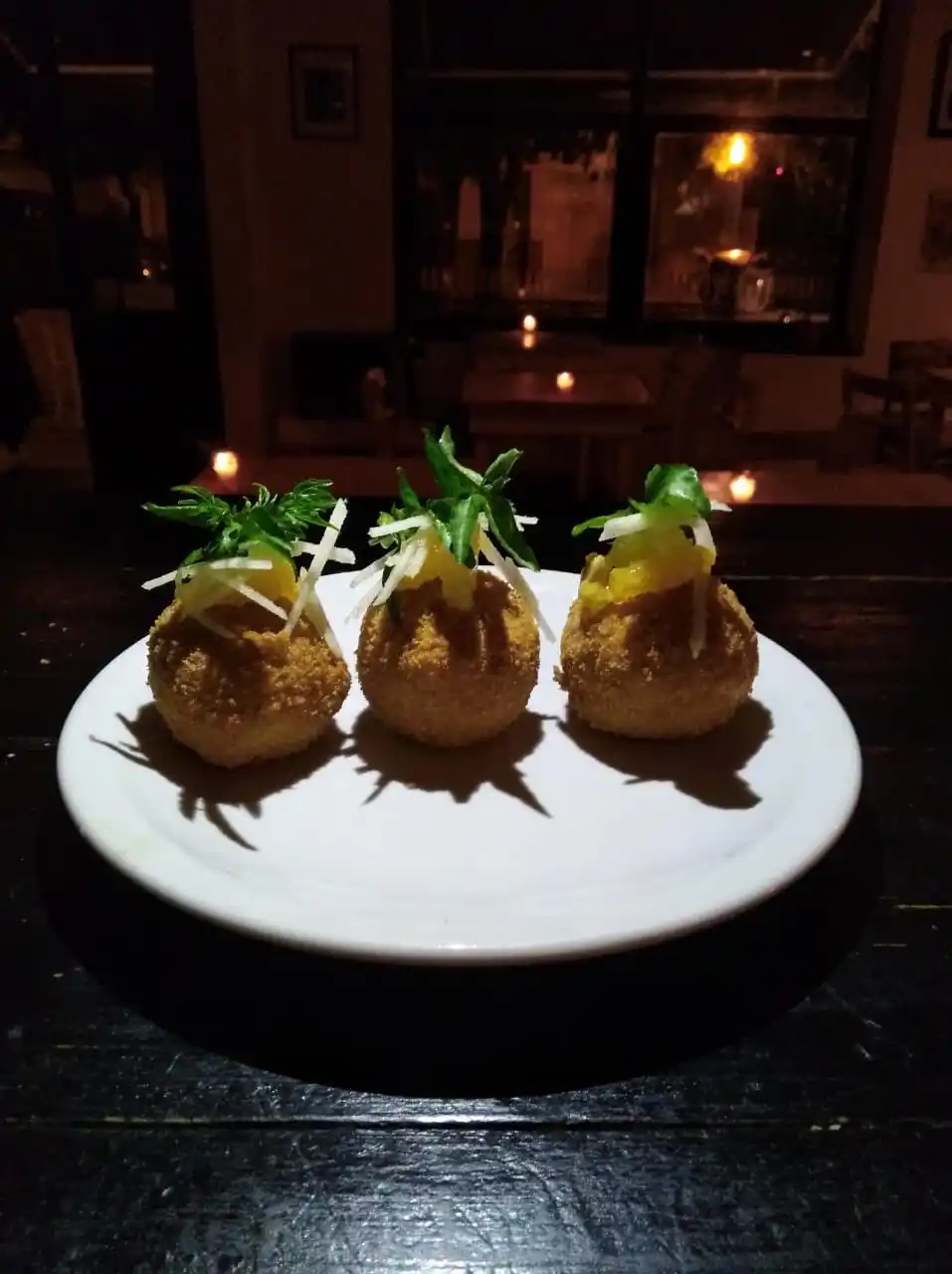 Preparación: Picar la cebolla y el ajo. Rehogar en una olla con la manteca durante 10 minutos a fuego medio. Agregar la harina y mezclar haciendo un roux (salsa blanca), y removerlo durante 1 minuto. Ir agregando de a poco la leche, previamente entibiada hasta lograr la consistencia de una salsa espesa. Agregar sal, pimienta y pimentón. Volcar en una fuente y llevar a la heladera por 1 ó 2 horas. Picar el salame holstein y muzzarella y mezclarlo armando bolitas de un centímetro y medio y dejarlas reposar en la heladera.