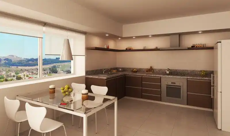 Imagen de cómo es el sector de la cocina de uno de los departamentos.