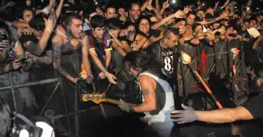Con la ansiedad en aumento, y luego de una larga espera que se debió, en parte, a la cantidad de personas que quedó afuera, a las 21.40 se apagaron las luces y dos minutos después llegó el momento más esperado. Chizzo, Tete y Tanque se acomodaron en el escenario e hicieron sonar los primeros acordes de “Corazón fugitivo”, uno de los temas de su último disco, e hicieron estallar al público.