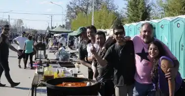 En medio de un clima ameno, comentaron que “estamos arrancando la previa, esperando que llegue la noche”, y destacaron que el encuentro es “comunitario” y que se “comparte lo que se tiene, a la espera del show”.