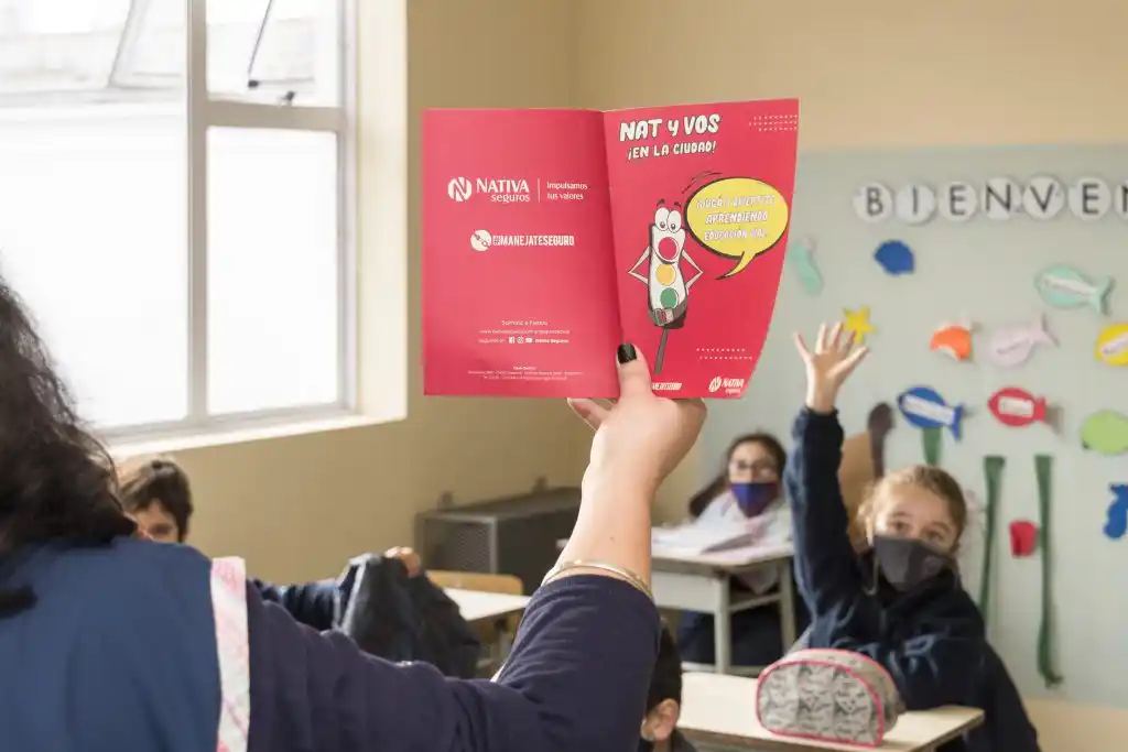 • Presencia en las instituciones educativas. Mediante la articulación con las instituciones educativas, los niños recibirán en sus escuelas el “Kit Nat”, compuesto por una mochila que contiene la edición Nº1 de la revista “Nat y vos en la ciudad” en la que aborda la temática vial de manera lúdica, el semáforo “Nat” muñeco didáctico y personaje principal de la historieta y un juego de lápices de colores. Los adolescentes, recibirán un kit similar que incluye una guía de manejo con el material teórico para rendir el examen de conducir, junto a una libreta y lapicera de material reciclado.