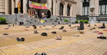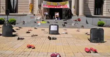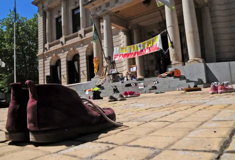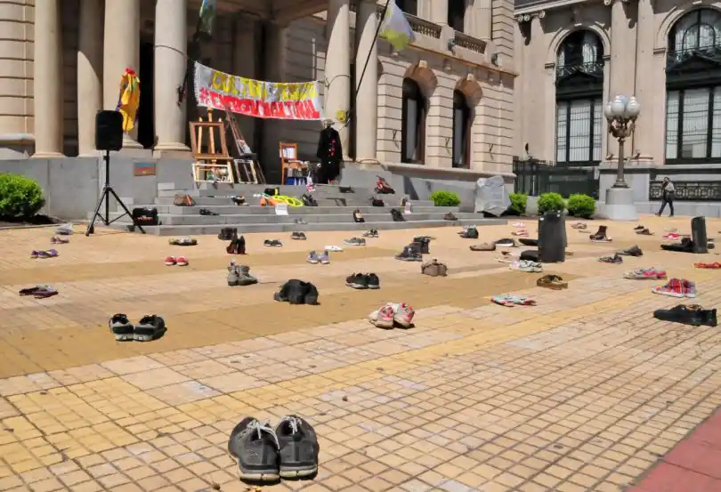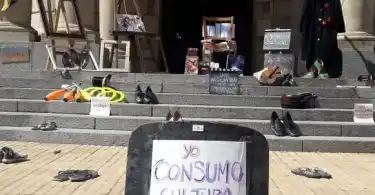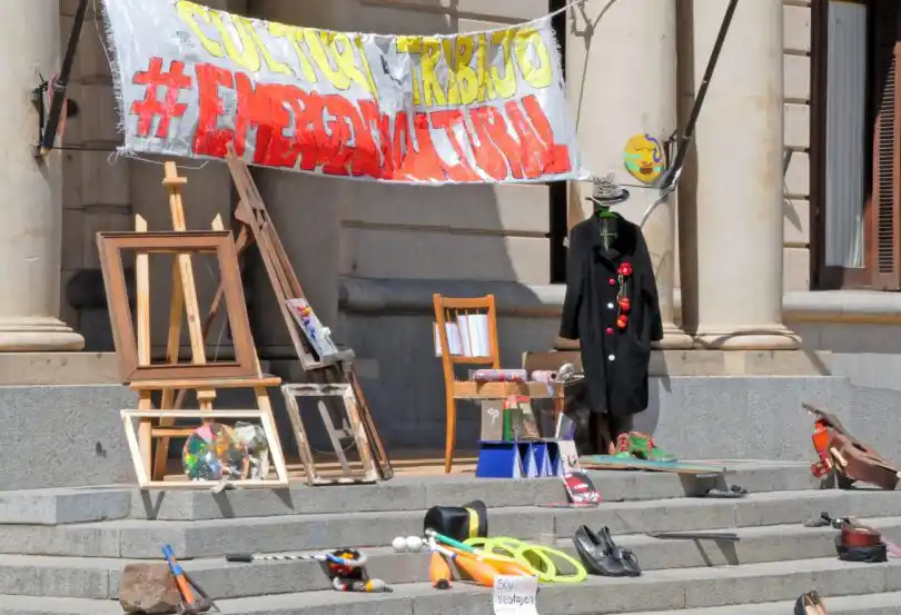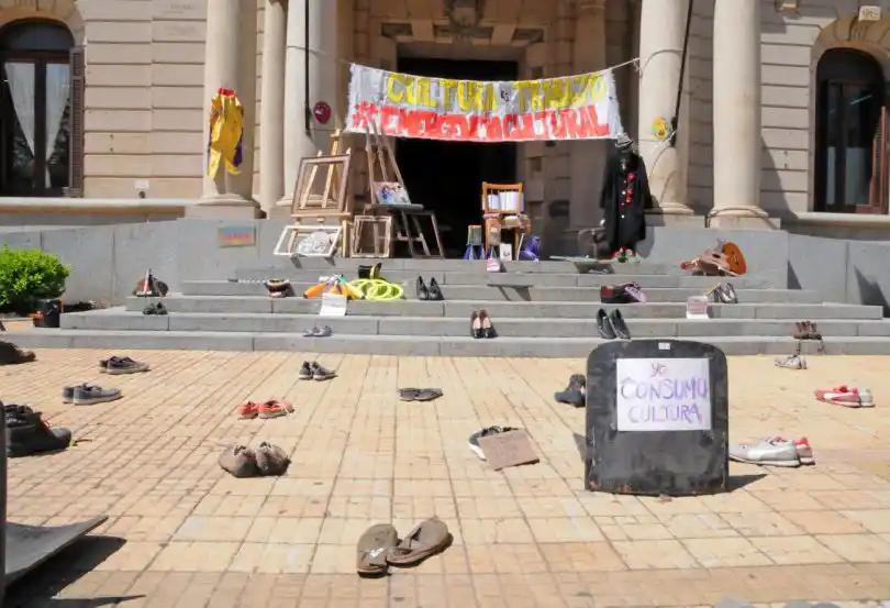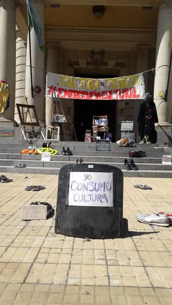 Accedé a las últimas noticias desde tu emailLa intervención del día trató de una instalación sin personas y con elementos que representan a los distintos sectores que forman este colectivo cultural que cada vez se consolida más y suma nuevos integrantes. Así, guitarras, narices, cuadernos, atriles, entre otro montón de artilugios se ubicaron en la explanada municipal junto a muchos pares de zapatos con carteles similares a los usados en la sentada del miércoles pasado: “Soy cultura y estoy en emergencia”.