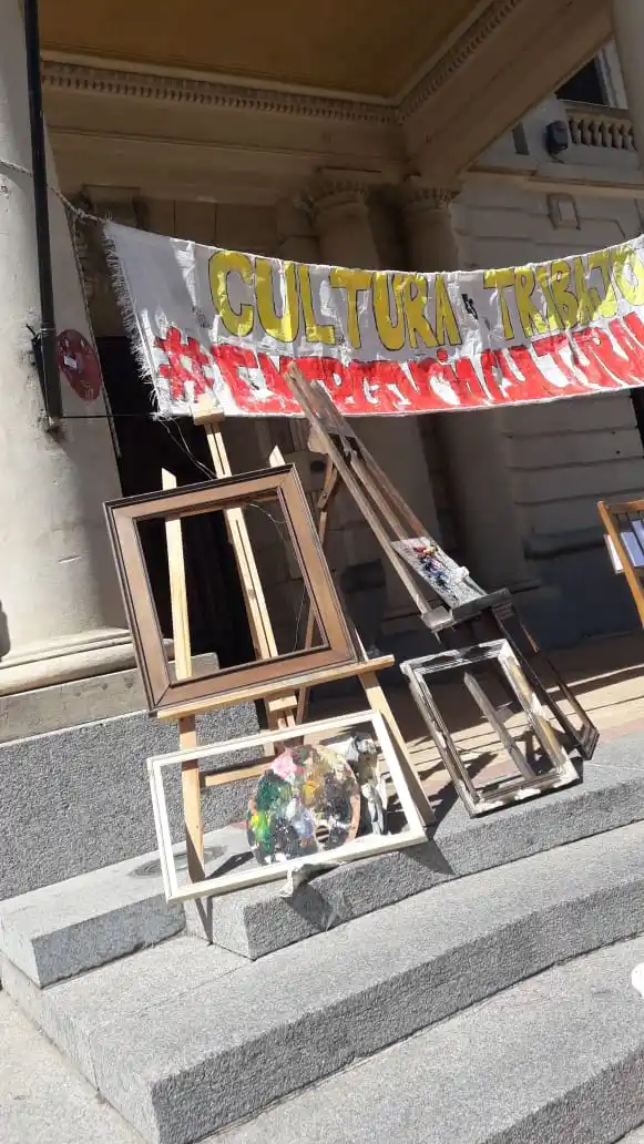 La ausencia, el vacío, el silencio. Como cada miércoles, por cuarta vez consecutiva los trabajadores del arte y la cultura se acercaron esta mañana a las inmediaciones del Municipio para manifestar la necesidad de que se declare la Emergencia Cultural del sector y los demás puntos del proyecto presentado ante Banca 21.