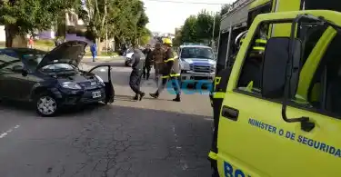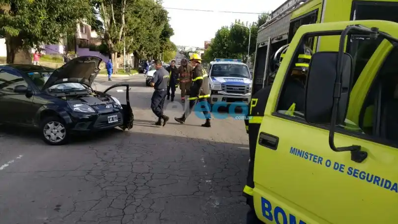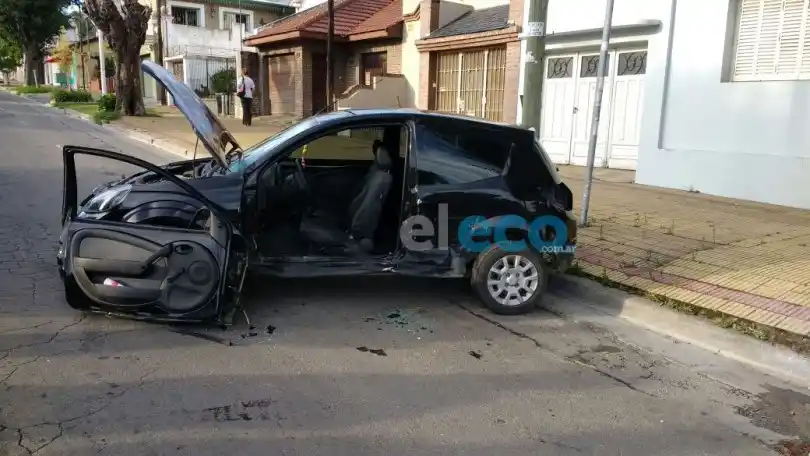 Un nuevo accidente protagonizado entre dos automóviles se registró en la mañana de hoy en la ciudad. El lugar fue la intersección de la Avenida Rivadavia y Veléz Sarsfield. En un rápido accionar de personal de Policía y Bomberos, se logró retirar a la mujer que conducía el Ford Ka y luego trasladada al Hospital Ramón Santamarina.