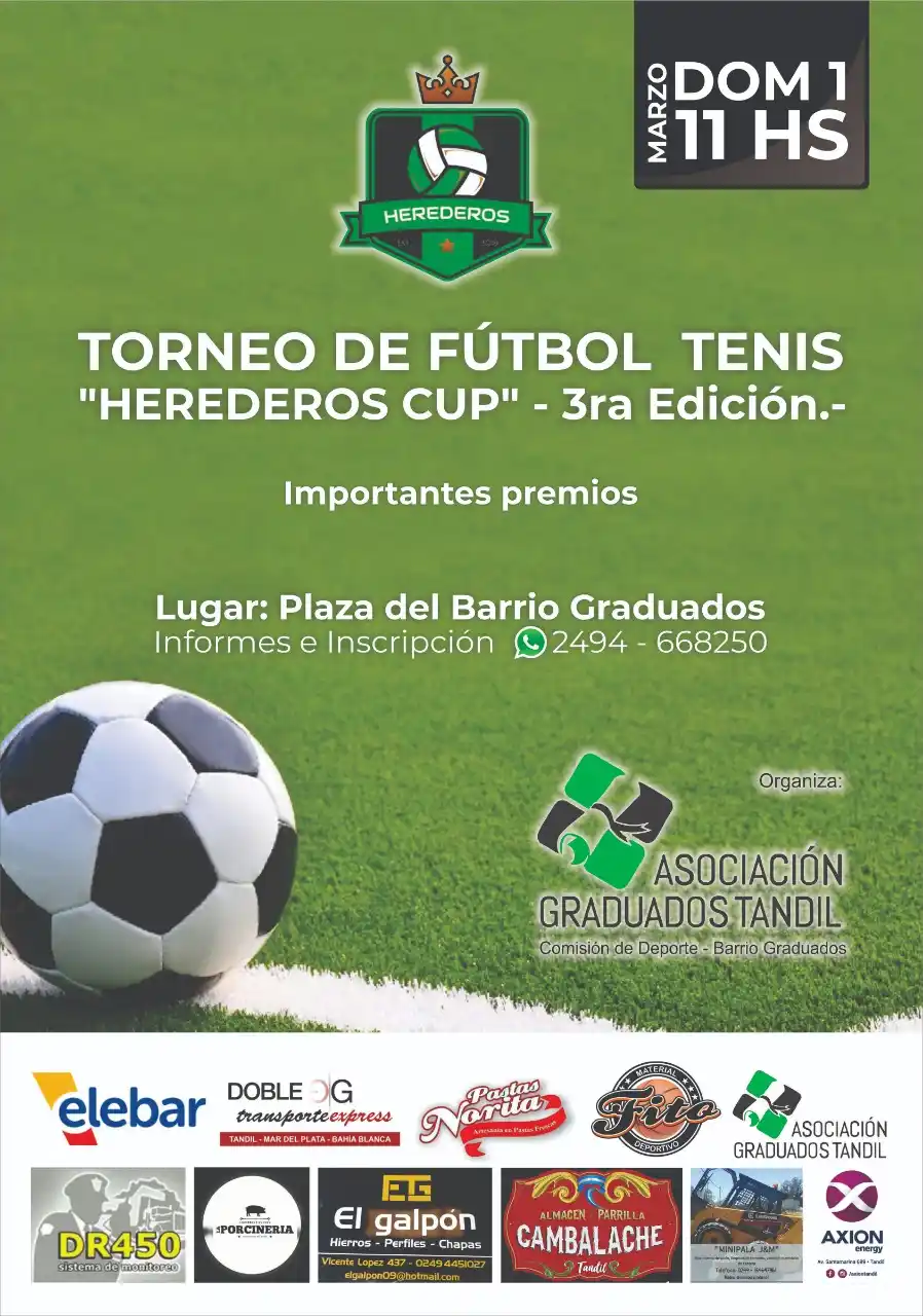 Hoy, a las 11, en la plaza del barrio Graduados, se llevará a cabo la tercera edición del Torneo de fútbol tenis “Herederos cup”.