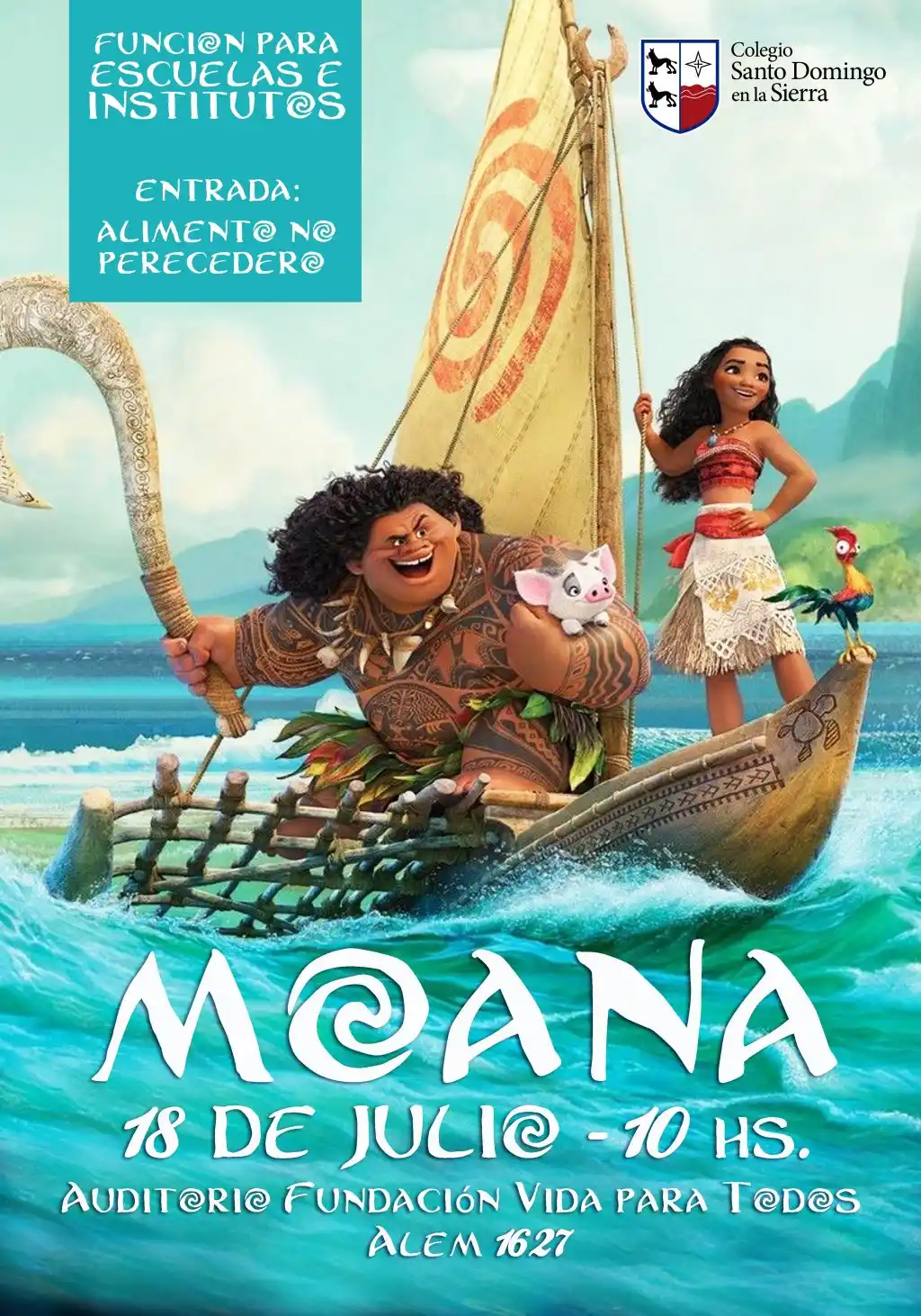 El jueves 18 de julio, a las 19.30, en el auditorio de la Fundación Vida para Todos (Alem 1627), subirá a escena el Concert de Middle School Students del Colegio Santo Domingo en la Sierra, “Moana”.