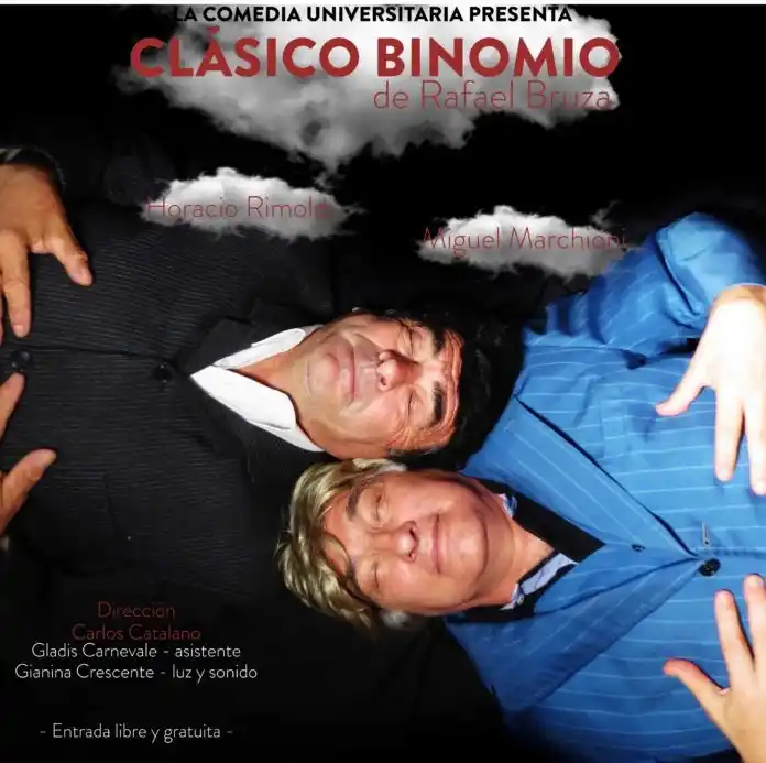 Hoy, a las 20, la Comedia Universitaria de la Unicen presenta la obra Clásico Binomio de Rafael Bruza. La cita será en el Centro Cultural San Pacífico (Sáez Peña 751).