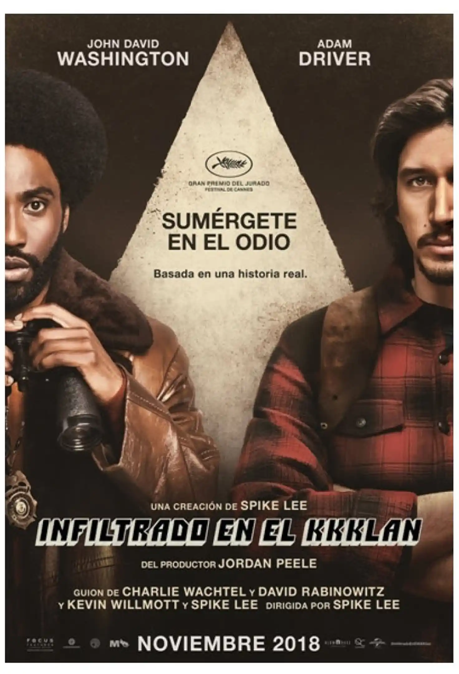 Sinopsis: Ron Stallworth, un detective afroamericano de Colorado en 1978 descubre un anuncio en el diario local en el que el Ku Klux Klan está buscando nuevos miembros. No sólo consigue ser miembro, si no que logra ascender hasta convertirse en jefe de la división. Stallworth, llevando a cabo todo tipo de estrategias para hacerse pasar por un supremacista blanco, incluso envía a un policía blanco en su lugar para las reuniones en persona. Durante su trabajo encubierto, el detective logra sabotear varias actividades que quería llevar a cabo este clan.