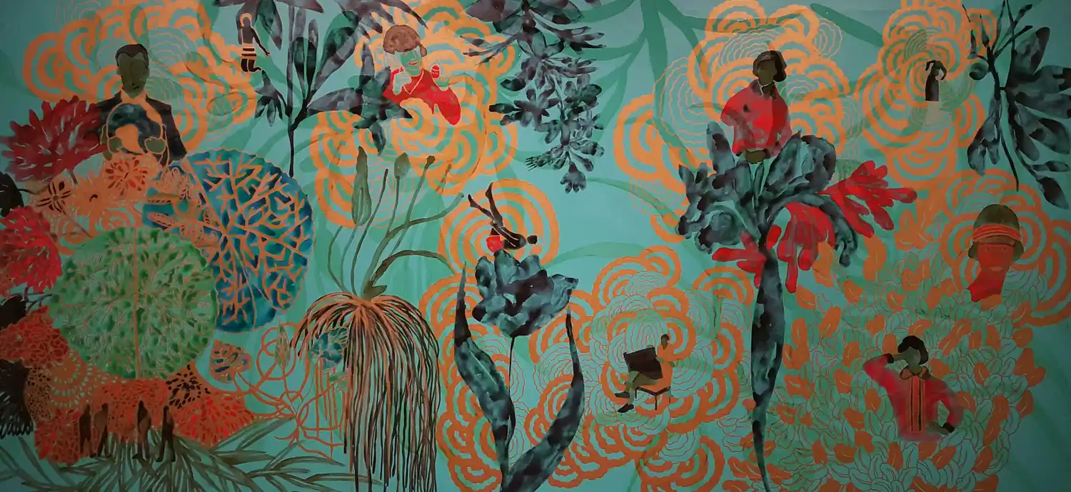 Carlota Petrolini, nos induce a compartir un falso paraíso, un Erótico vergel. Decenas de símbolos diversos, pueblan este espacio donde la lujuria se ha apoderado del mundo en un éxtasis de placer. Sus figuras casi primitivas, se entrelazan en ritmos danzantes, rituales. La dualidad en la estructura de su obra, por una parte la descripción narrativa de sus personajes, y por otra, la intención de alterar un orden y componer un desorden, confiere a la misma un barroquismo exquisito, a manera de collage.