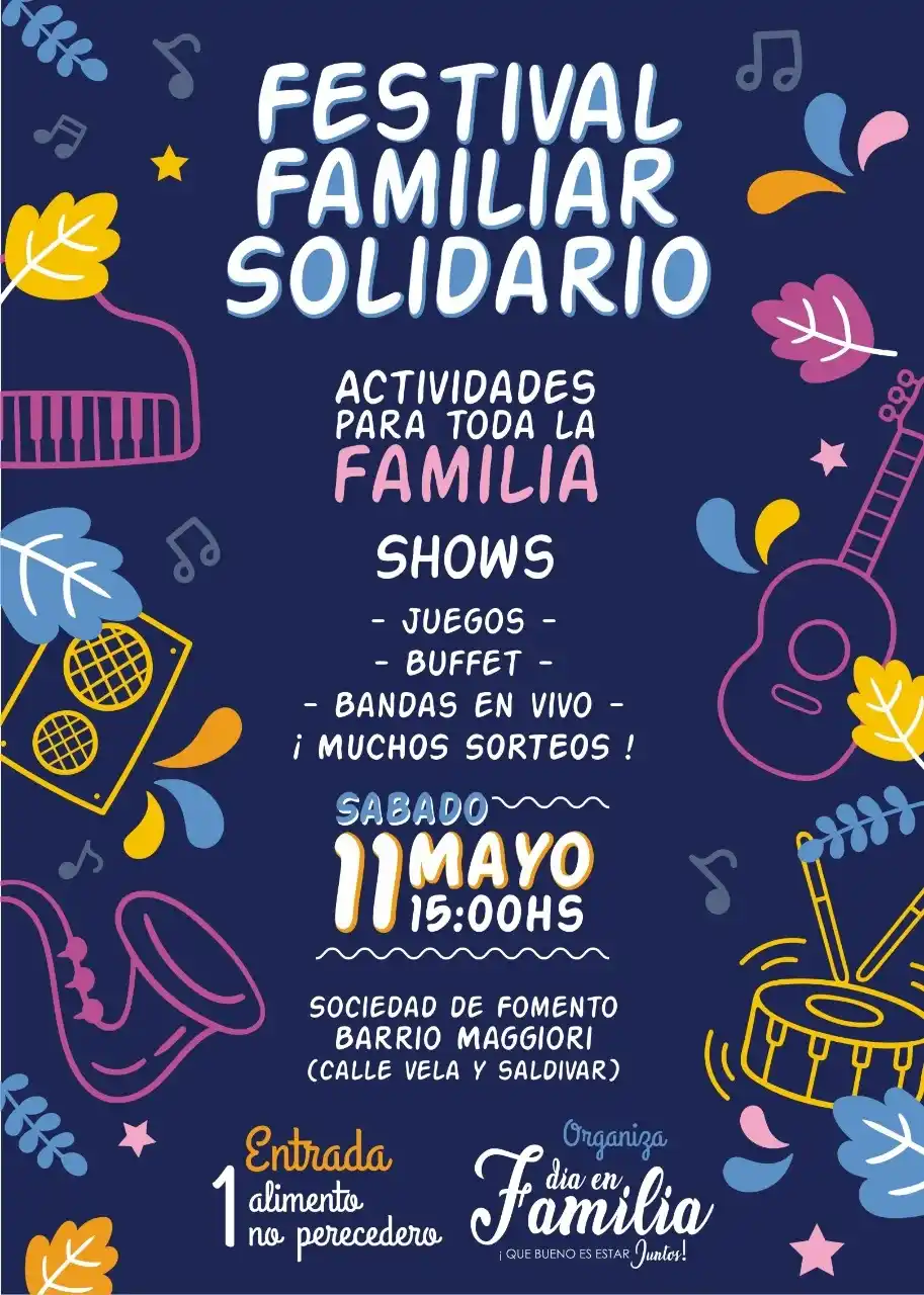 Este sábado a las 15 en la Sociedad de Fomento del barrio Maggiori (calle Vela y Saldívar), se llevará a cabo un festival familiar solidario. Habrá shows, música en vivo, buffet y muchos sorteos. La entrada consiste en un alimento no perecedero.