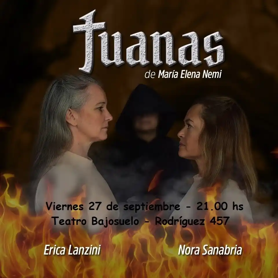 Este viernes a las 21 en Bajosuelo (Rodríguez 457), se presentará “Juanas”, escrita y dirigida por María Elena Nemi, con actuaciones de Nora Sanabria y Érica Lanzini.