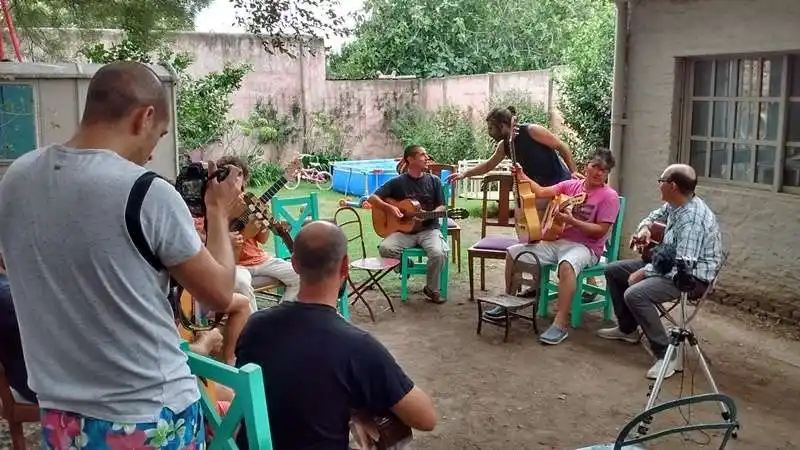 Como se narrara oportunamente, los tres episodios de Abrazo de guitarra fueron rodados en diferentes momentos y lugares; el primero, titulado “El patio”, se realizó en el patio de tierra de una casa antigua con la presencia de unos 15 guitarristas y la lectura de una poesía que destacó el valor de la sencillez. El segundo, llamado “El club”, tuvo lugar en el bar del club Defensa y el tercero “La vida”, en el Hogar de Ancianos San José.