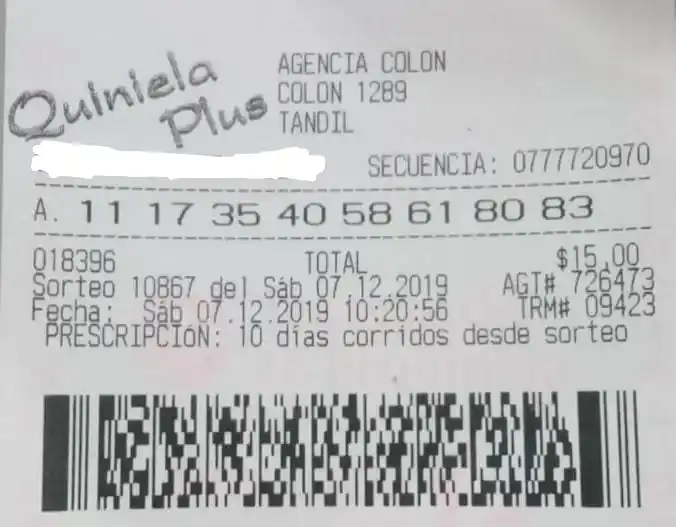 El ganador o ganadora, cuyo nombre se preserva para proteger su identidad, obtuvo un premio de 1.200.000 pesos netos, luego de acertar ocho números -11, 17, 35, 40, 58, 61, 80 y 83- en un cartón que tenía un costo de 15 pesos.