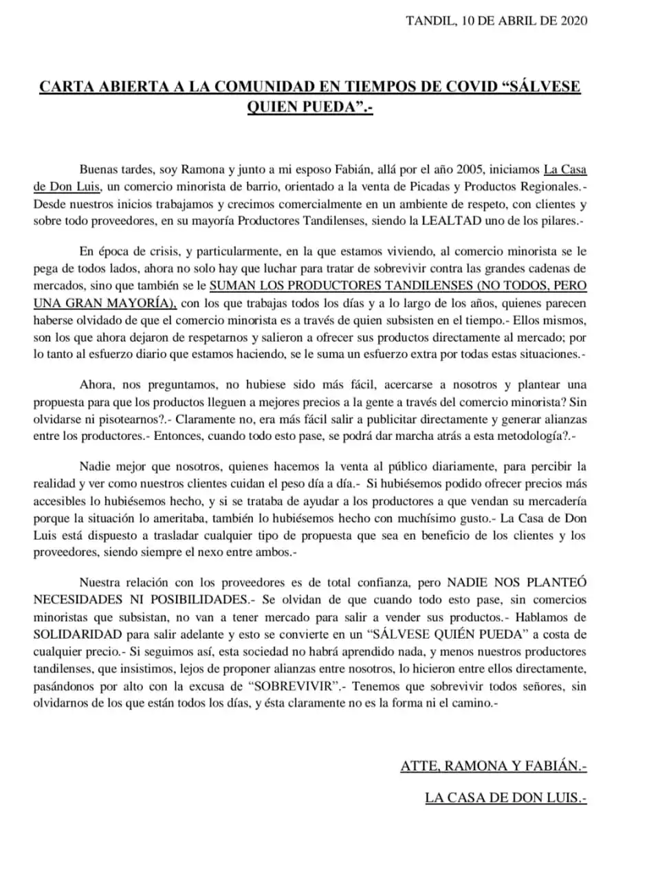 Carta abierta de una comerciante tandilense: “Sálvese quien pueda”