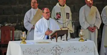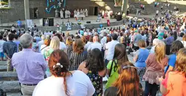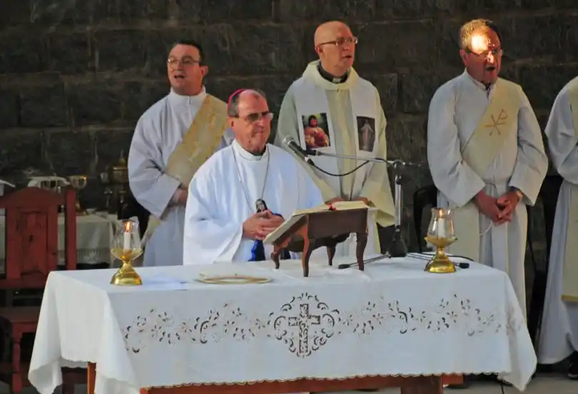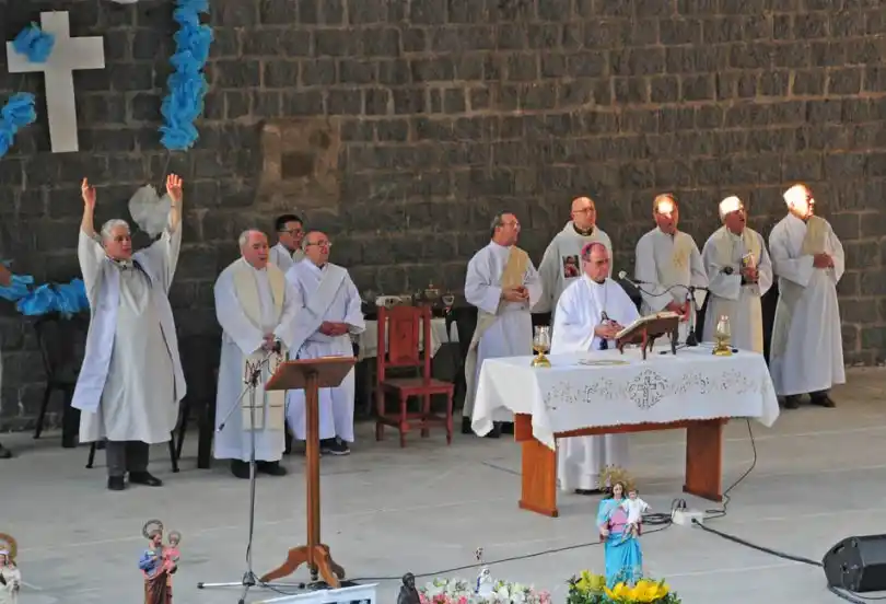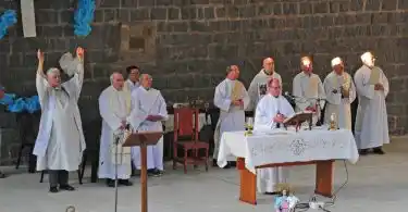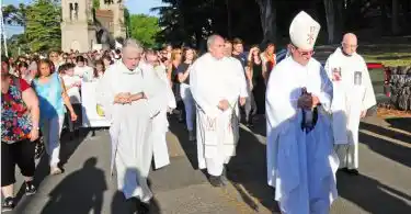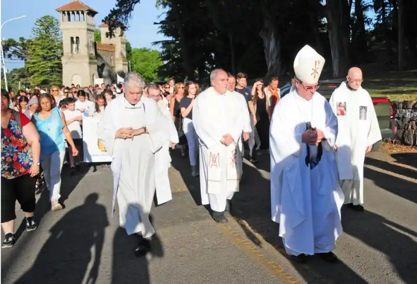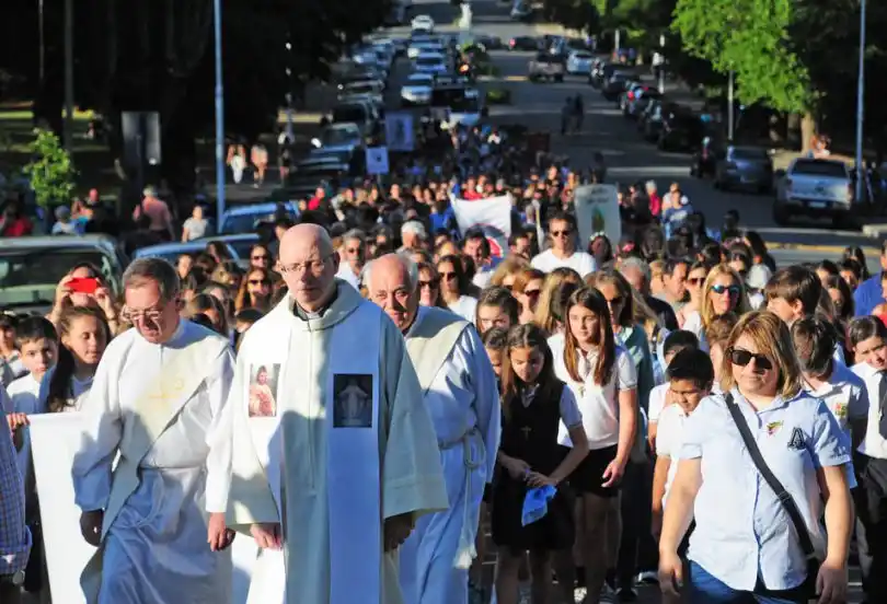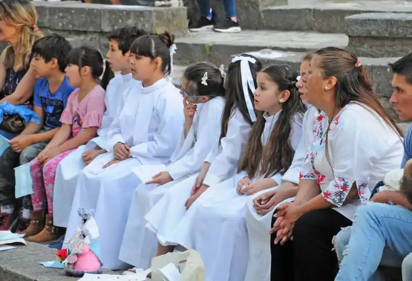 Luego del clásico recorrido, llegaron al Anfiteatro Martín Fierro donde los recibió el obispo Hugo Manuel Salaberry, quien ofreció la Santa Misa en la que los niños que este año tomaron su primera comunión comulgaron por segunda vez.