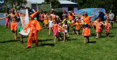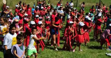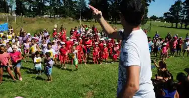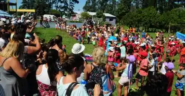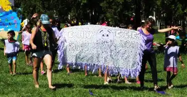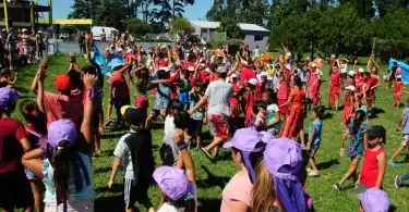 Con entusiasmo y alegría, bajo un sol radiante, cientos de pequeños bailaron la coreografía. Por último, hubo kermés y picnic.