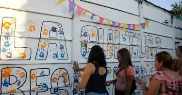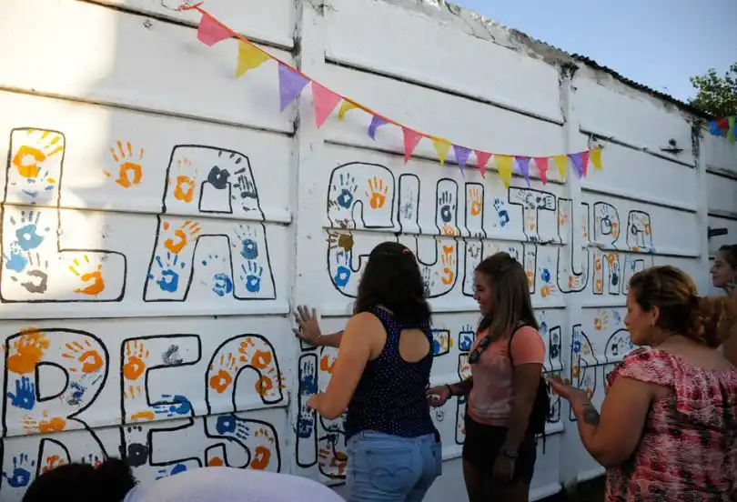 Como para dejar plasmada la lucha, bocetaron un mural que fue pintado el sábado, donde todos los presentes mostraron su apoyo al dejar plasmadas sus manos, como sosteniendo el centro cultural.