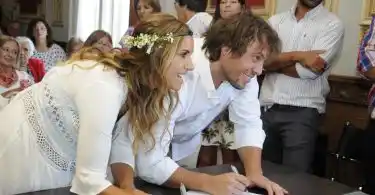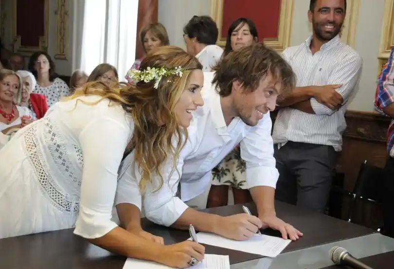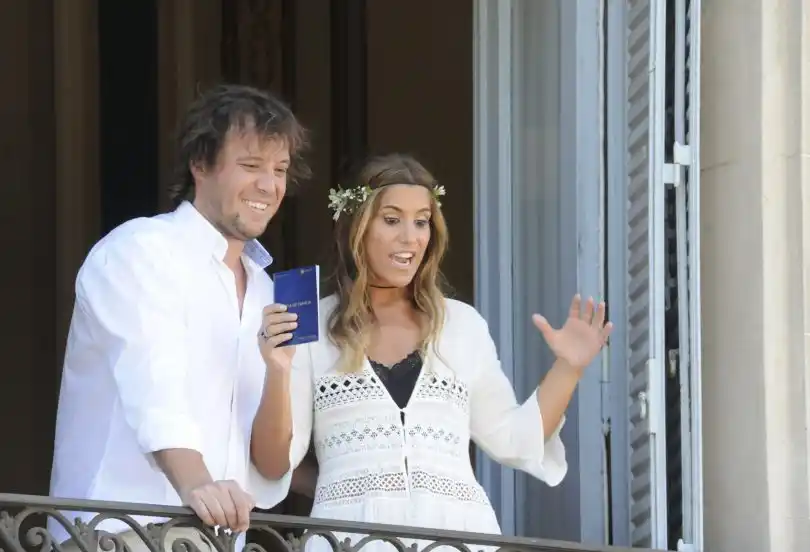 Juntos desde hace seis años, se mostraron felices y sonrientes por poder sellar su amor con todos sus seres queridos en el corazón de la ciudad que los vio nacer.