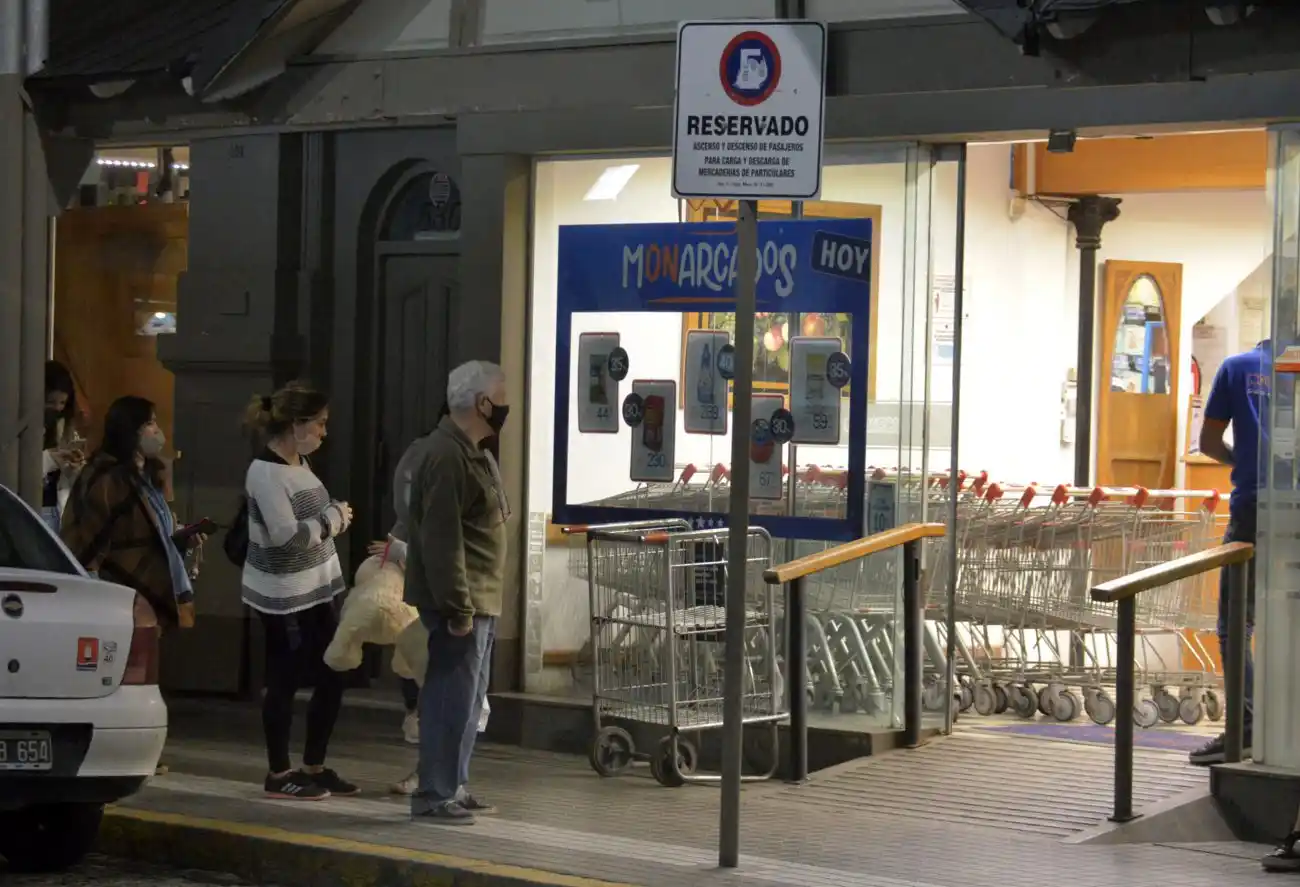 Unos treinta minutos antes de la hora señalada para el cierre, una fila de personas aguardaba para hacer sus compras en el supermercado Monarca. Posiblemente algunos habrían olvidado las nuevas restricciones y por tal motivo, acudieron a último momento a comprar algo para la cena o algún otro elemento que no habían tenido en cuenta.