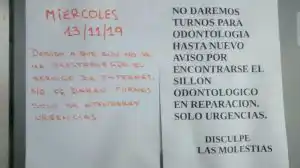 Sumado al proceso del posoperatorio, durante la mañana de ayer tuvo que regresar por una dolencia en sus encías. “Llegué a la sala y me encuentro con un cartel en el que se indicaba que solo atienden urgencias porque el sillón odontológico está roto”.