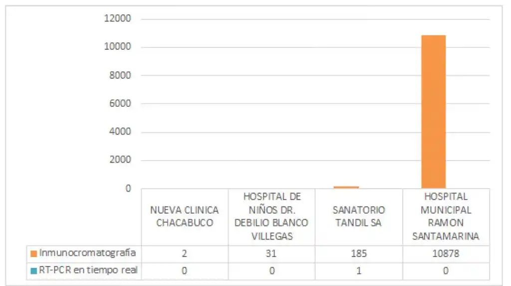 En cuanto a los centros de internación, el Hospital procesó 10.878 test rápidos; el Sanatorio Tandil 185; el Hospital de Niños 31 y la Nueva Clínica Chacabuco 2.