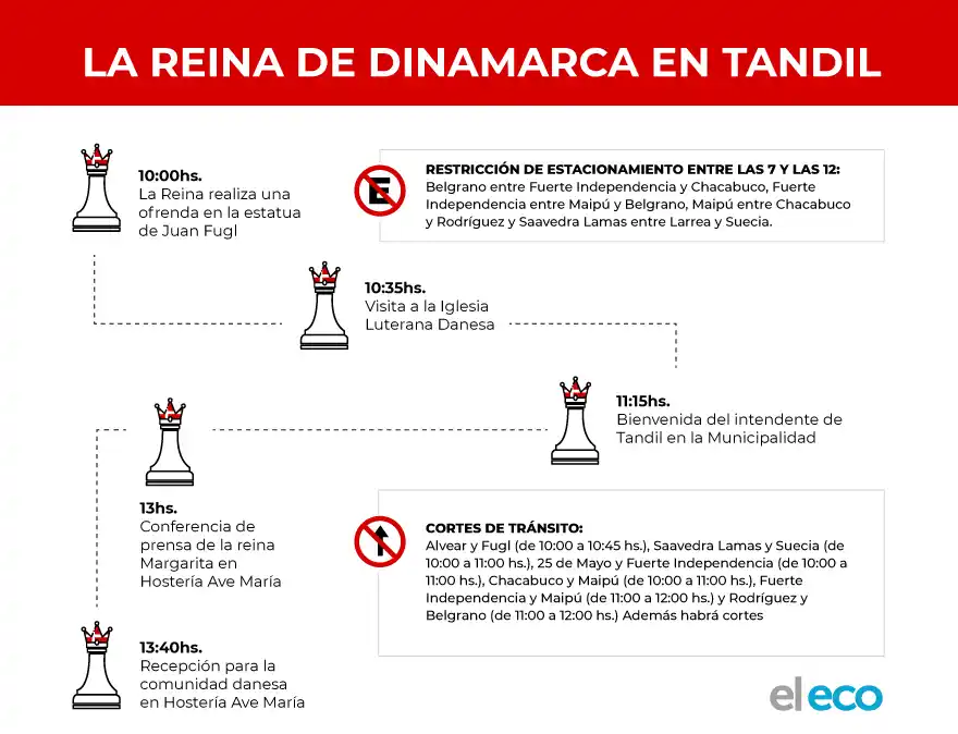 En el marco de la visita oficial para “establecer, fortalecer y promover las relaciones” entre Dinamarca y Argentina, la reina Margarita II arribó al país este domingo junto a su hijo, el príncipe Federico, y hoy, después de 53 años, desembarcará en Tandil por segunda vez para tomar contacto con tandilenses e integrantes de la comunidad danesa local y de la región.